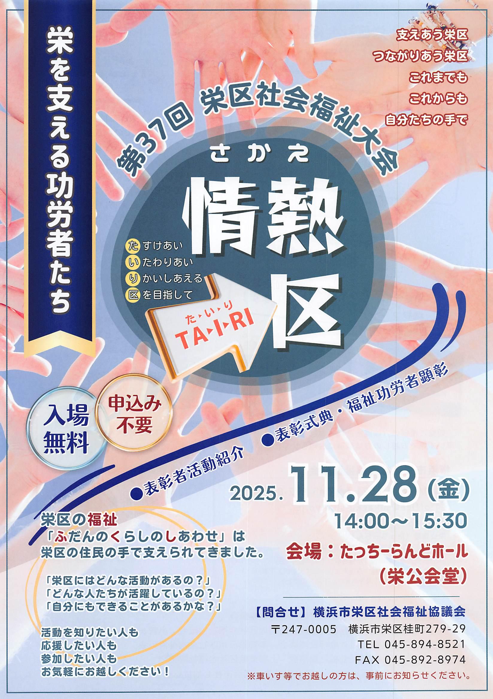 - 第37回栄区福祉大会を11月28日(金)に開催します。 支えあう栄区 つながりあ…