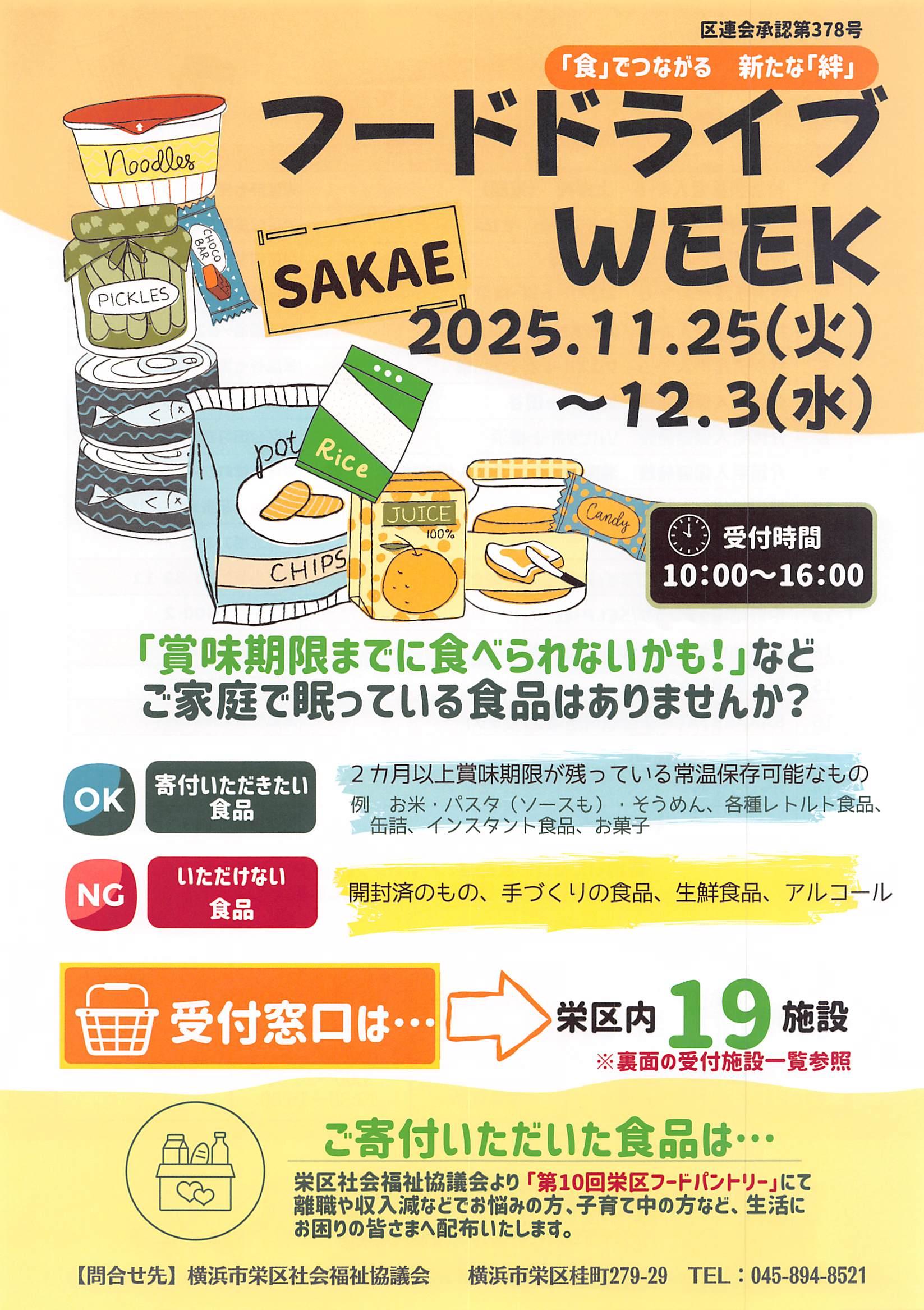 - 10月民児協定例会よりお知らせ:「SAKAEフードドライブWEEK」- SAKAEフードドライブWEEKは2025年11月25日~12月3日です。 「賞…