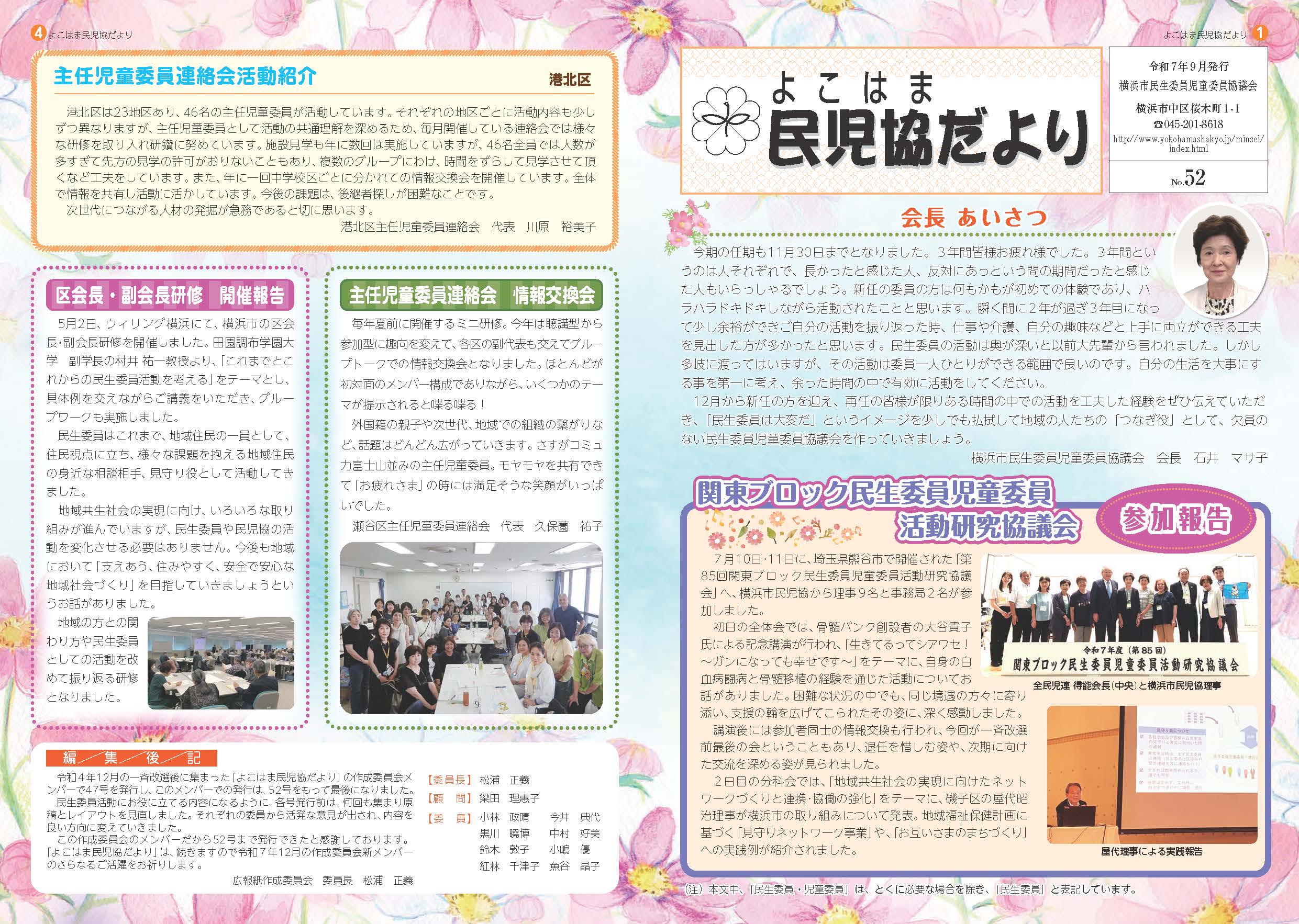 9月民児協定例会よりお知らせ:「よこはま民児協だよりNo.52」