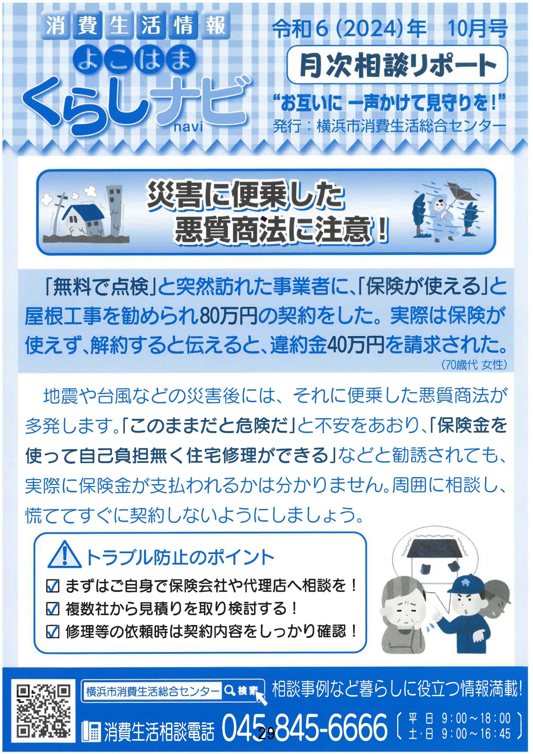 横浜市消費生活総合センター 栄区内で点検商法(詐欺)と思われる事案があったとの情…