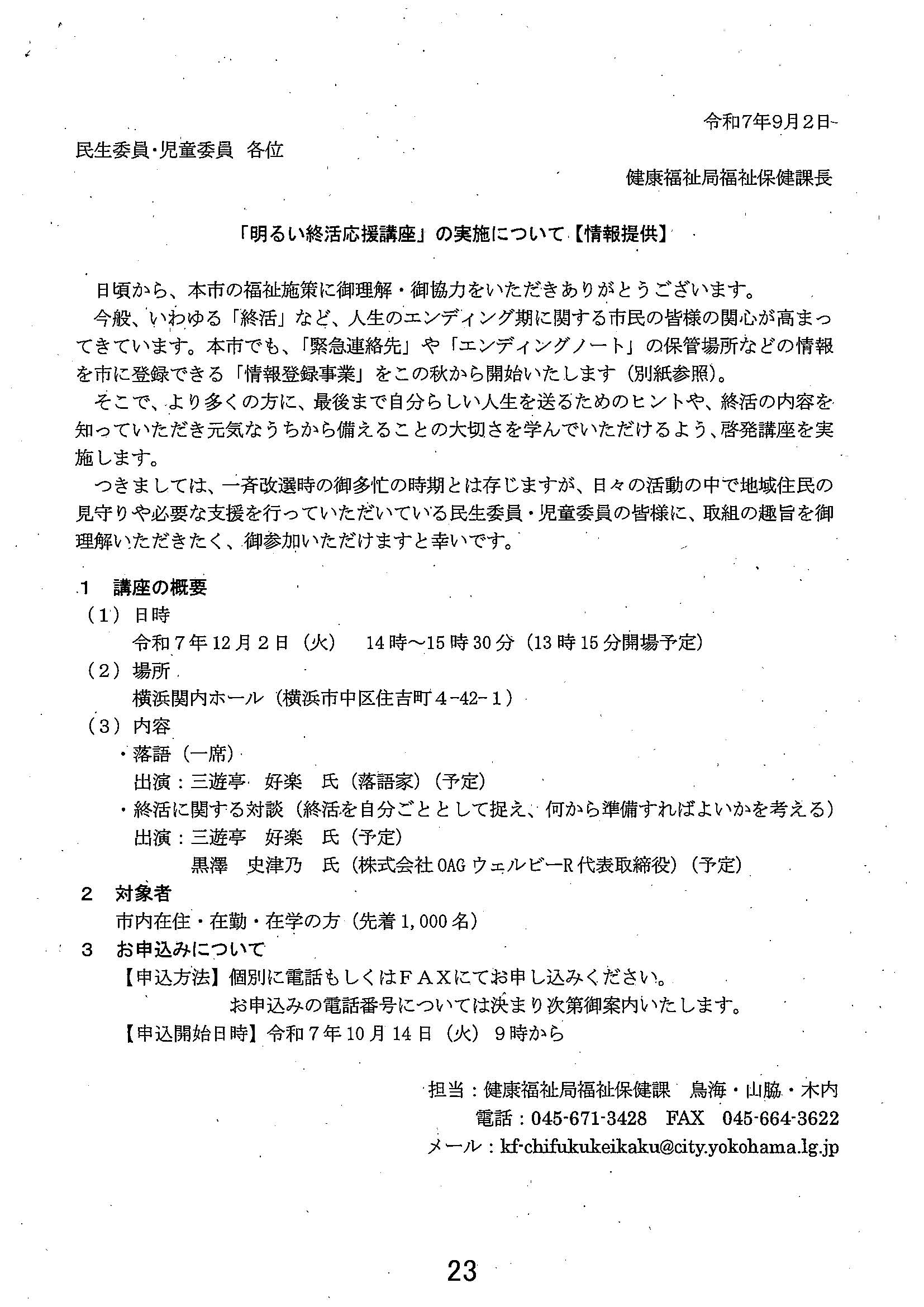 横浜市 「明るい終活応援講座」 日時:令和7年12月2日(火) 14時~15時3…