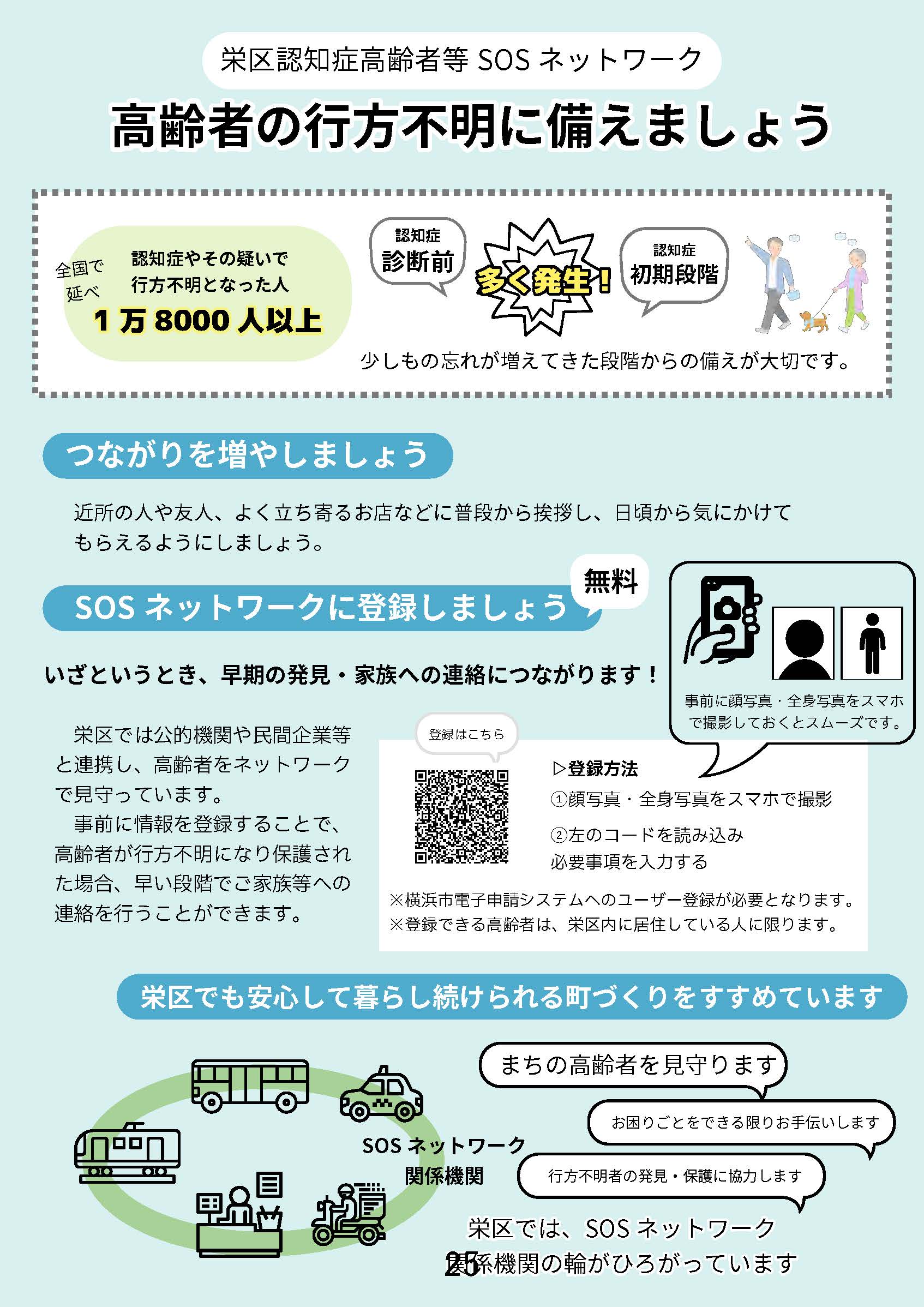 栄区認知症高齢者等SOSネットワーク事業 高齢者の行方不明に備えましょう 来訪者…