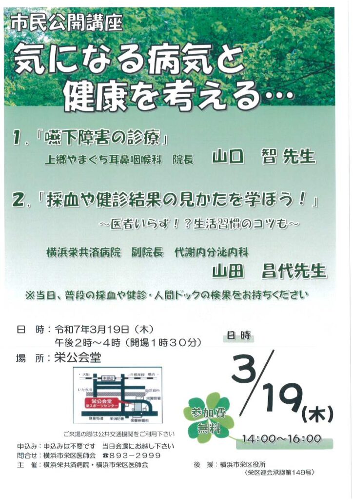 ・横浜栄共済病院 「市民公開講座」開催のお知らせ